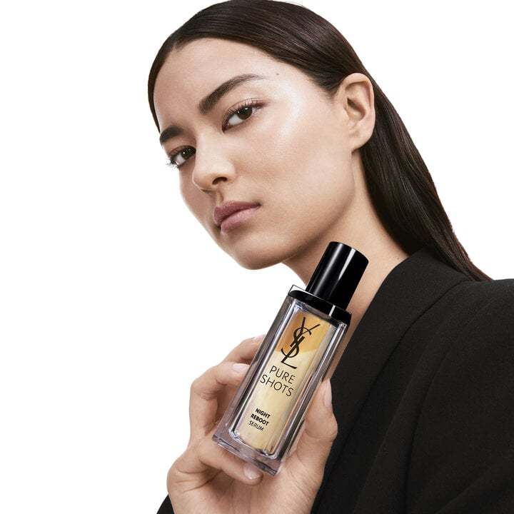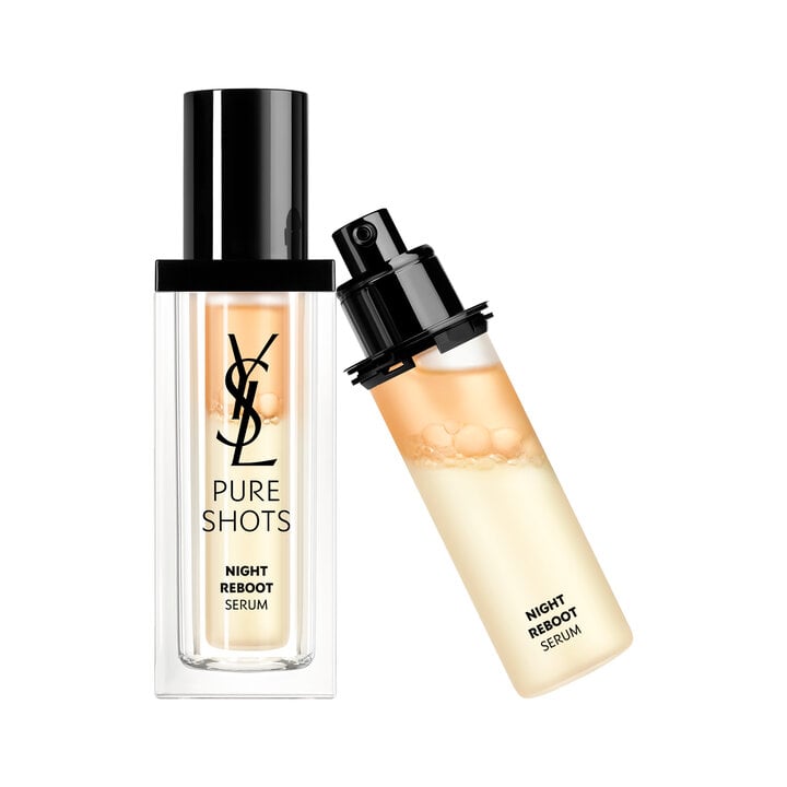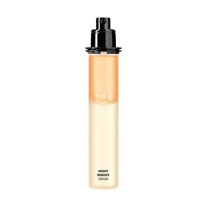 -Gently shake the Night Reboot Serum to mix the two phases and activate formulation.