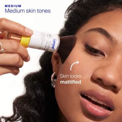 What Else You Need to Know:With a built-in brush, mineral sunscreen actives & mattifying ingredients to control shine, this on-the-go essential makes it easy to retouch your look & reapply SPF anytime, anywhere — even over makeup. Use it at home to set your look, then toss it in your bag to use throughout the day.