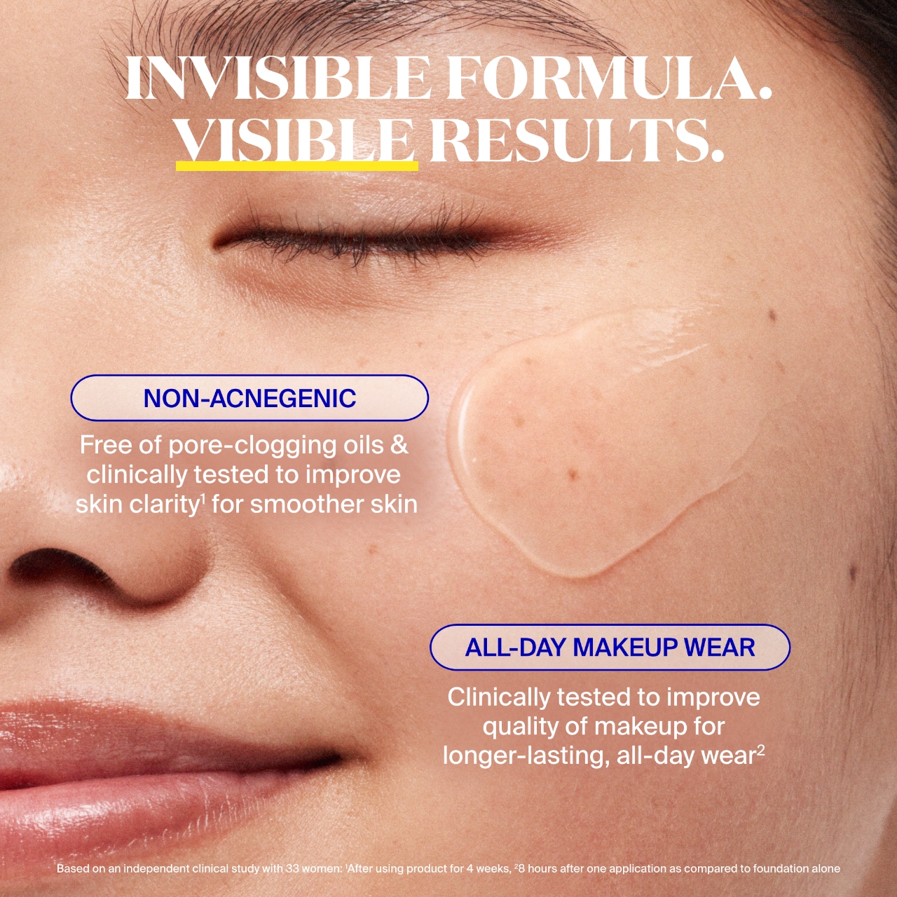 - After using product for 4 weeks, non-acnegenic formula clinically tested for improved skin clarity